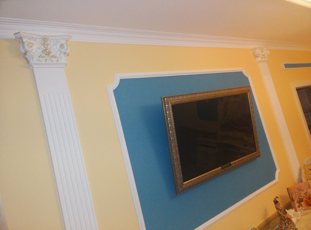 – v tretjem prostoru smo spustili strop in namestili LED trak; stene in stropove smo okrasili in popestrili s štukatirami, ter stenskimi tapetami